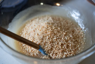 - Commencez par hacher grossièrement les amandes (pas en poudre afin de garder une certaine texture croquante).