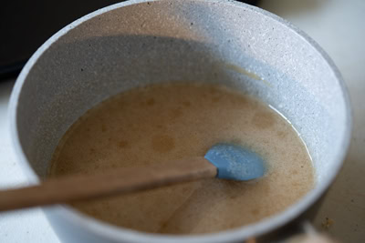 Dans une casserole, chauffez à petit feu le miel et le sucre.