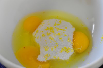 - Dans un saladier fouetter au fouet manuel les oeufs, jaune d'oeuf ainsi que le sucre sans oublier le zeste de citron.