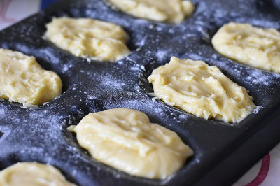 - Remplir au 3/4 vos moule de la préparation a madeleine (comme Bernard j'ai utilise de gros moules j'ai donc pris 1 bonne cuillère a soupe en laissant une marge de moins d'1 cm).
