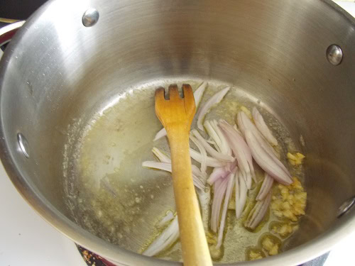 - Chauffer le beurre dans une casserole à fond épais. Ajouter les échalotes et l'ail et cuire à feu moyen jusqu'à tendreté.