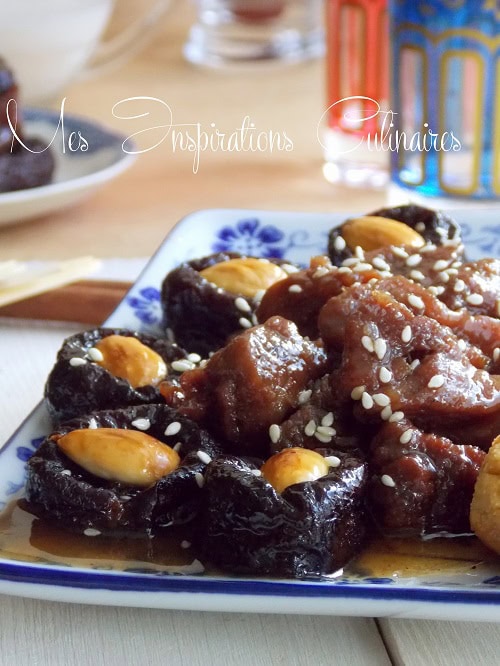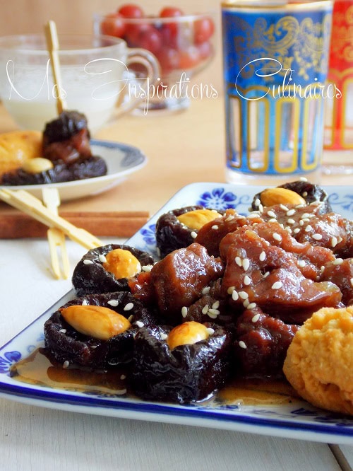 Ce plat est vraiment simple on laisse cuire la viande tranquillement, on y ajoute les fruits secs pruneaux et/ou les abricots secs ainsi que des amandes. En fin de cuisson on obtient une viande fondante et une sauce sirupeuse.
