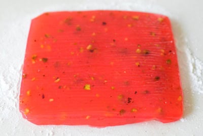 Dans cette version, je les ai parfumés à la grenade et agrémentés de pistaches concassées. Une recette traditionnelle, sans gélatine ni agar-agar.