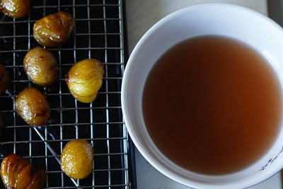- Répéter la même procédure pendant 4 jours (6 jours en tout). Les marrons prendront l'aspect des marrons confits avec une couleur plus foncées.