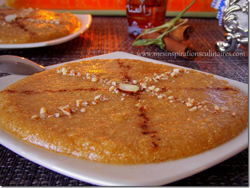 - Verser la Tamina dans des assiettes de service ou une grande assiette qu'on décore en général de cannelle ou encore de fruits secs concassés.