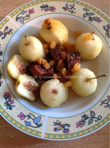 Pour le plat principal je vous propose un savoureux tajine poulet poire caramélisées