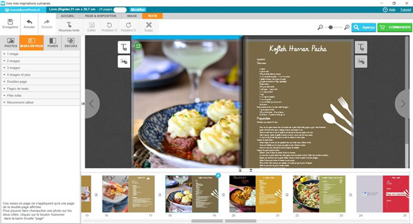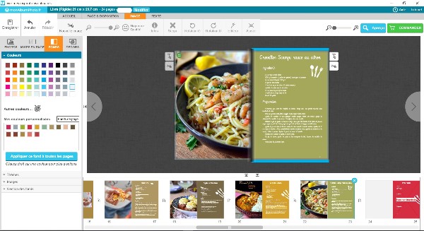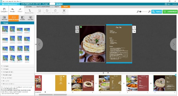 Pour ma part, j’ai choisi un livre de recette de 24 pages. J’avais le choix entre réaliser de A à Z mon livre en le personnalisant comme je le souhaitais et sélectionner un thème prédéfini.