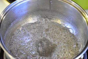 Dans une casserole, versez le sucre et l’eau puis portez le mélange à ébullition à feu moyen.