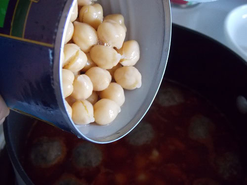 Ajouter les pois chiches dans la sauce et laisser cuire tranquillement.