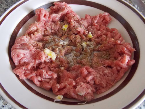- Ajouter à la viande hachée le poivre noir, le cumin et 3 gousses d’ail pilées.
