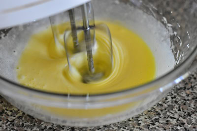 - Dans un saladier battre l'oeuf et le sucre jusqu’à une consistance mousseuse.