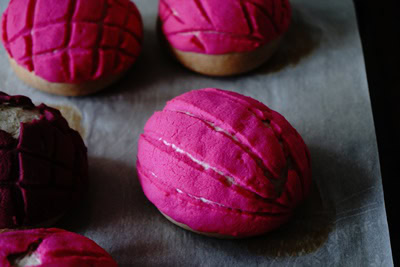 Je n’ai jamais eu l’occasion de goûter ces pains mexicains, et je crois que je les préfèrerai natures mais ainsi décorés de rose ils sont en effet parfaits pour octobre rose.