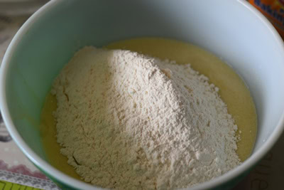 Incorporez la farine mélangée au sel en mélangeant vigoureusement afin d’éviter les grumeaux.