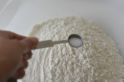 - Dans une terrine verser la farine et le sel, mélanger.