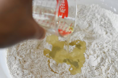 - Ajouter l'huile et incorporer du bout des doigts.