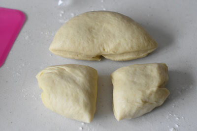 - Dégazer la pâte et la partager en 4 parts égales.