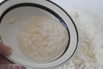 - Verser la levure dans un peu de lait tiède et laisser mousser environ 15 minutes.