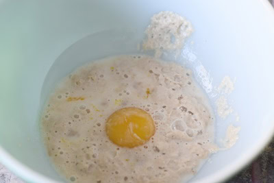 - Dans un saladier, battre les jaunes d'oeuf à la fourchette et ajouter la levure dissoute.