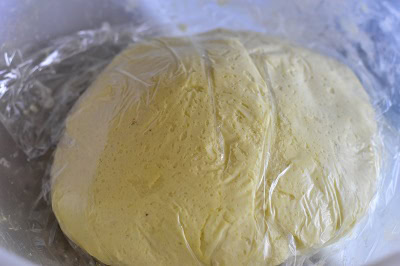 - Former une boule arroser le fond du saladier d'huile d'olive et déposer la boule de pâte, couvrir de film alimentaire et de torchon. Laisser doubler de volume dans un endroit a l’abri du courant d'air.