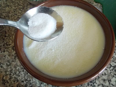 - Dissoudre le sucre et la fécule de maïs dans le lait froid et placer sur feu moyen.