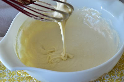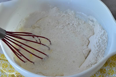 - Mélanger bien le tout au fouet jusqu’à incorporation totale de la farine. La pâte doit être grumeleuse.