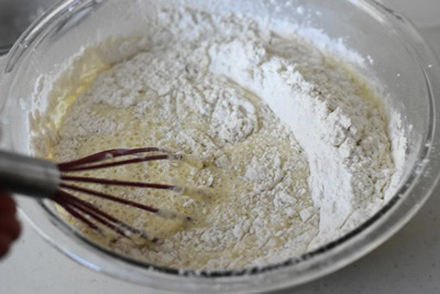 - Tamiser les ingrédients secs sur les ingrédients liquides. Fouetter jusqu’à obtenir une pâte lisse et épaisse.