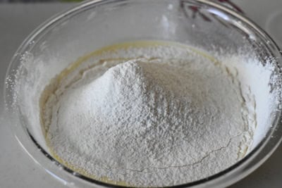 - Dans un saladier, mélanger les ingrédients secs : farine, levure chimique et sel.