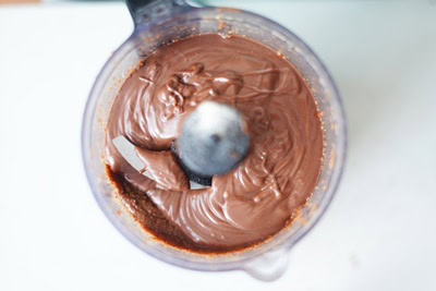 - Verser le chocolat dans le mixer sur la pâte a noisette et mixer afin d'incorporer les deux préparations on obtient donc un Gianduja.