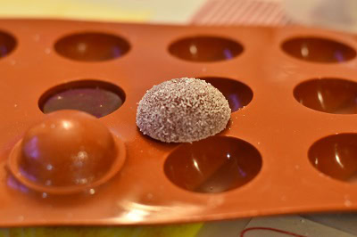 Retirer la casserole du feu et verser dans le moule ou comme moi dans des moules en silicones. Lisser la surface (attention il faut aller vite).