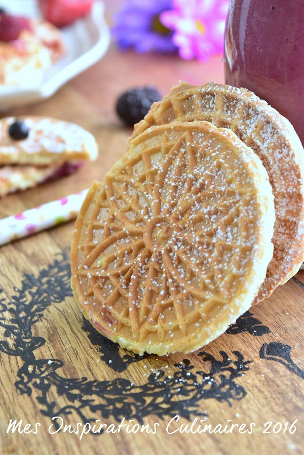 Après refroidissement les Pizzelles font durcir et être croustillants. Servir avec des fruits et saupoudrées de sucre glace.
