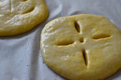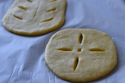 Le façonnage est très facile on façonne soit une galette ronde et plate ou en forme ovale puis on pratiquera une incision sur chaque coté de la galette.