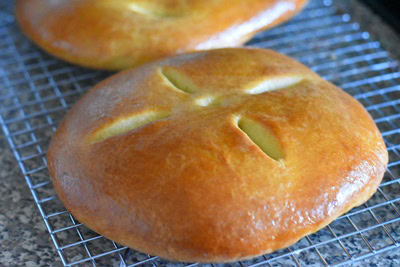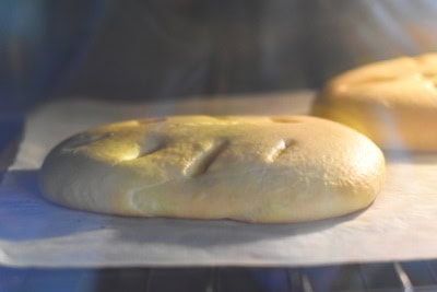 je viens de faire votre pompe à huile je la sors du four elle est bien gonflé elle va refroidir et on va la déguster avec le café et je vous dirai si elle est bonne a plus tard merci
