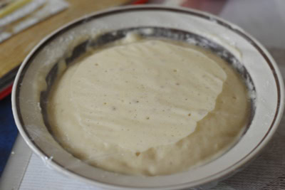 Couvrez d’un filme alimentaire et d’un torchon propre. Laissez doubler de volume pour environ 4 heures.