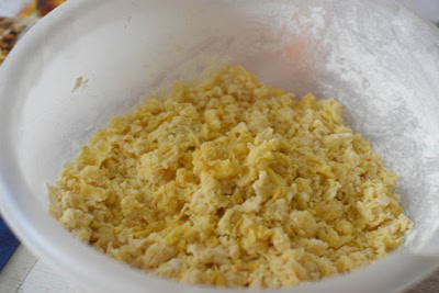 - Faire un puits et ajouter les oeufs battus légèrement, le sucre, ainsi que l'huile d'olive, l'eau de fleur d'oranger et les zestes.