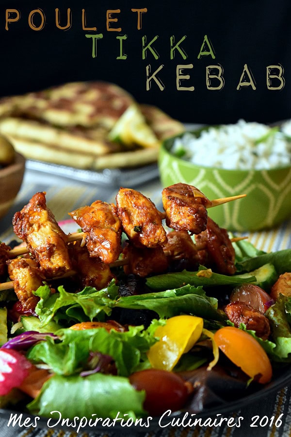 Le poulet tikka Kebab n’est autre que du poulet coupée en cubes, marinés dans une sauce Tikka Massala enfilés dans des brochettes accompagnée d’une bonne sauce au yaourt.