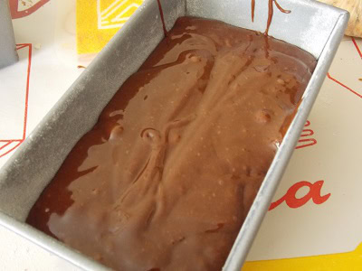- Verser le tout dans le moule a cake. A l'aide du manche de la cuillère en bois faire passer sur tout le long de la préparation au centre.