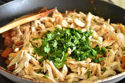 - Incorporer ensuite le poulet, la coriandre hachée et les oignons verts.