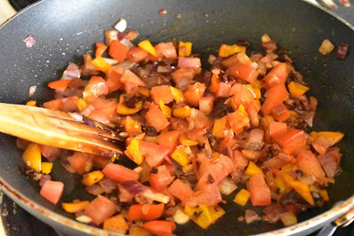 - Ajouter les tomates en cubes ainsi que le piment mexicain Chipotle. Ajouter les poivrons coupes en cubes.