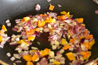 - Faire chauffer l'huile d'olive et ajouter l'oignon rouge et faire sauter environ 5 minutes.