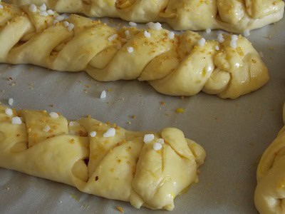 - Découper des bandes oblique sur les 2 extrémités de la brioche.