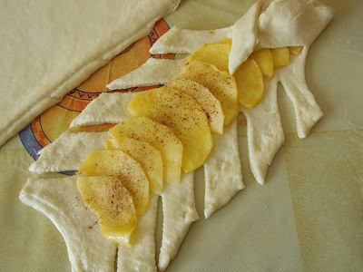 - Placer au centre les lamelles de pommes, saupoudrer de cannelle