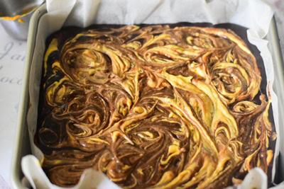 Pour se mettre dans l’ambiance automnale, j’ai décidé de réaliser des brownies aux noix et à la purée de citrouille façon cheesecake. Une recette trouvée sur le site des brownies nouvelle tendance.