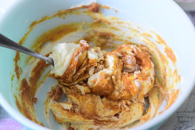 - Ajouter la purée de citrouille, la farine, la cannelle, la noix de muscade et le blanc d'oeuf réservé. Réserver.