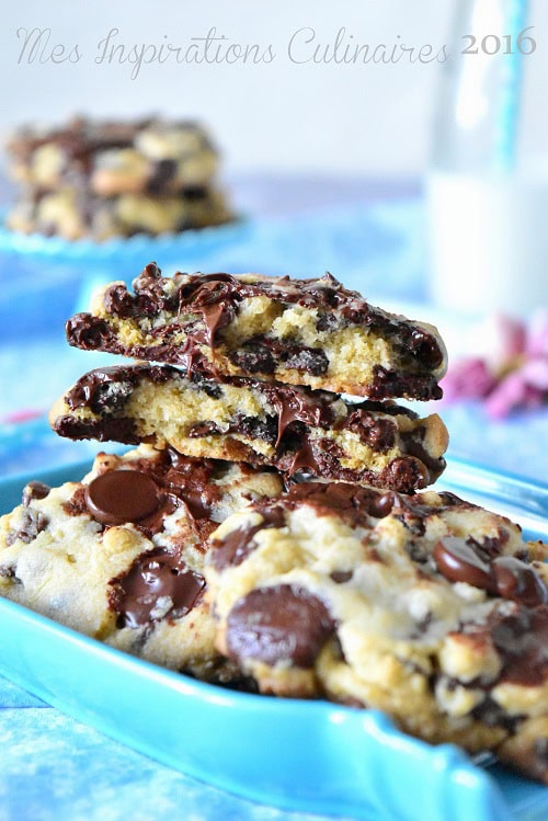 Ces cookies americains sont faciles à preparer mais toutefois voici quelques conseils à suivre pour ne pas obtenir des cookies trop plats : Le beurre ne doit pas être trop mou ni fondu juste à température ambiante. Vous pouvez placer la pâte au frais quelques minutes et enfin lors de l’incorporation de la farine ne travaillez pas trop la pâte.