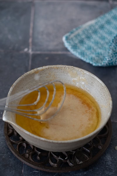 Préparez le beurre noisette en faisant fondre le beurre dans une casserole jusqu’à ce que la mousse de beurre colore et apporte un goût particulier.