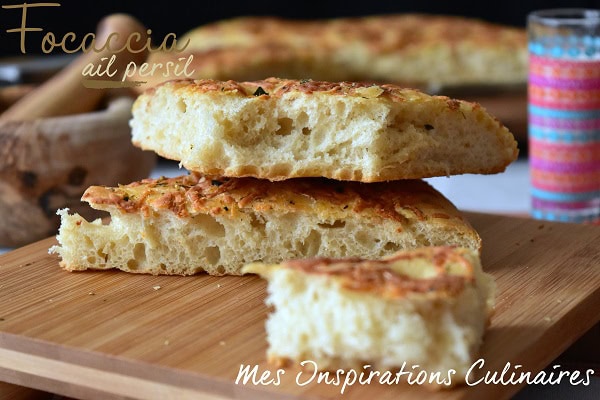 Cela fait un moment que je n’ai pas propose de pain et pourtant je boulange toujours et pleins de recettes sont en attente d’être publiées, parmi mes pains préférées le pain italien la Focaccia, on ne se lasse pas de la déguster. Il existe une multitude de recette de ce pain méditerranéen aujourd’hui je vous propose la recette de la Focaccia à l’ail persil et fromage.