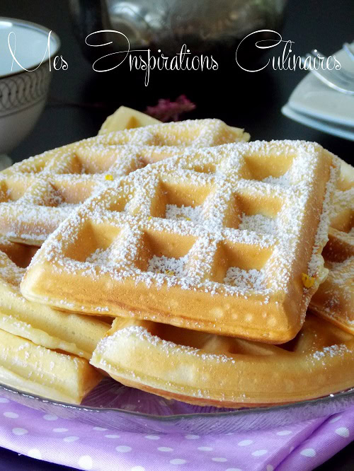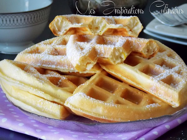 Des gaufres moelleuses que j’ai parfumé mes gaufres de zeste de citron et retiré le sucre, mais vous pouvez ajouter une cuillère à soupe si désirée. Avant de servir je saupoudre de sucre glace parfumé au zeste de citron.
