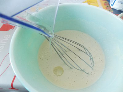 - Ajouter le lait petit a petit en fouettant, ajouter l'huile.