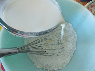 - Dans un saladier verser la farine et levure ainsi que le sel, mélanger le tout.