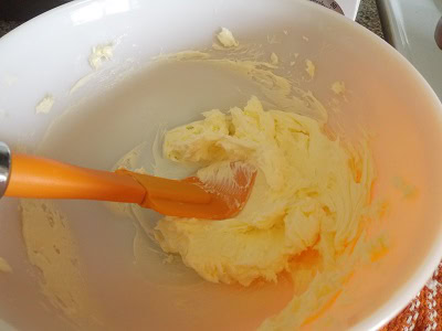 - Battre le beurre en crème. Ajouter le sucre et continuer à battre jusqu’à obtenir un aspect crémeux et une couleur pale.